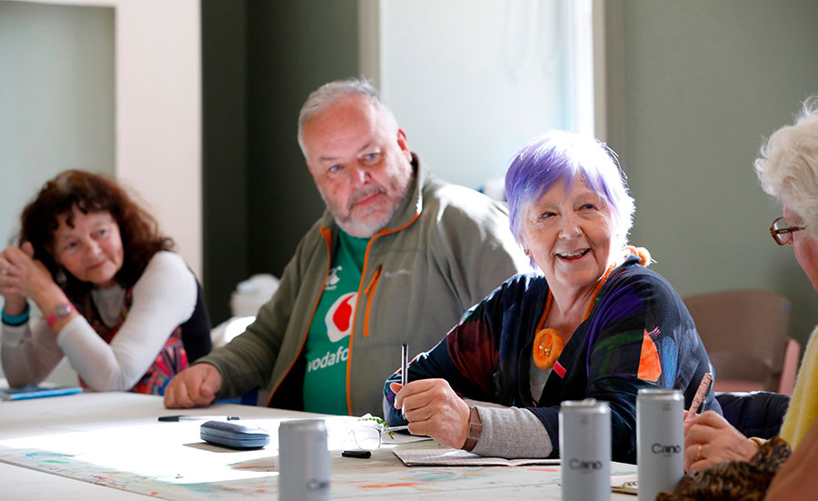 Fatima Groups United Family Resource Centre represents residents and community projects in Fatima and Herberton, Dublin 8. Since 1995, FGU has supported the physical and social regeneration of the area. FGU provides services in health, wellbeing, education, employment, arts, childcare, counselling, family support, information, advice, and advocacy. Fatima Poetry Vigilantes is a poetry group organised by Fatima Groups United. They won the Creative Lives Ireland Award in 2022 for Dance Til Dán – a film celebrating community through poetry and dance. They organise frequent Poetry Cafés and Poetry Trains.