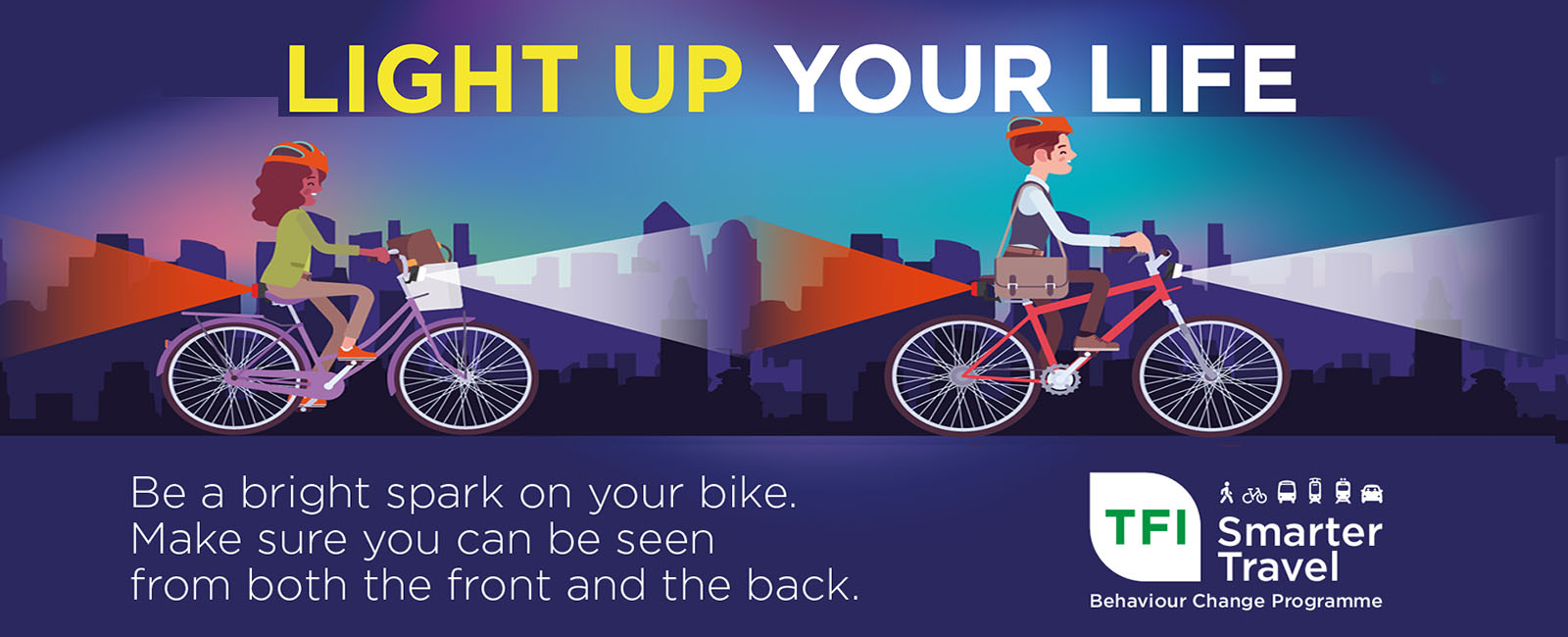 The annual Light Up Your Bike promotion takes place every October. Partners of the Smarter Travel Programme are invited to register for free bike lights prior to the October Bank Holiday when the clocks go back.